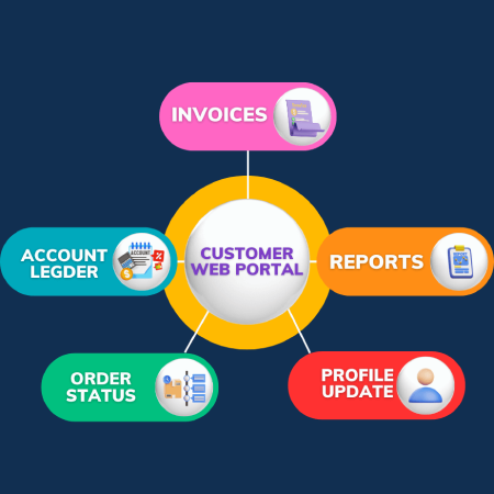 Customers can track orders, check ledgers, and place sales orders instantly.